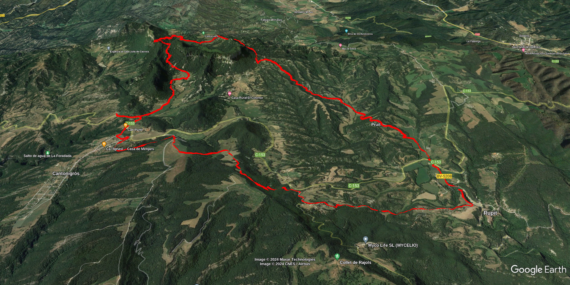 El objetivo de esta salida es el de generar una circular que pase, desde Cantonigròs, por el Coll del Bram, por Pruit y por Rupit.